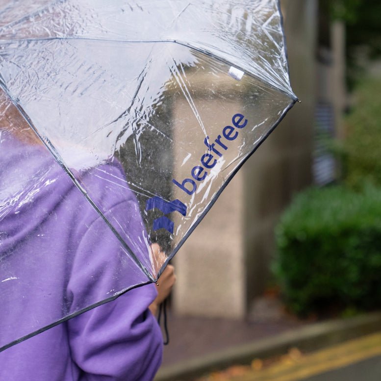 The Mini Bubble is a manual open umbrella with a 44" arc, clear vinyl and steel construction with matching tips, ferrule, and binding. Packaged in an eco-friendly sleeve and powered with our RainAlertz app, telling you when it's going to rain!